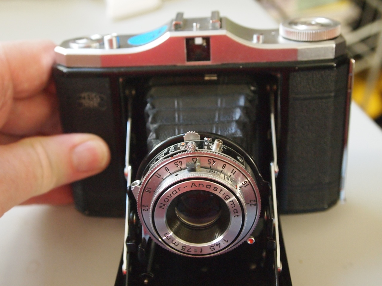 Want something a bit more pocketable? How about an old Zeiss Ikon Nettar from about 1949?