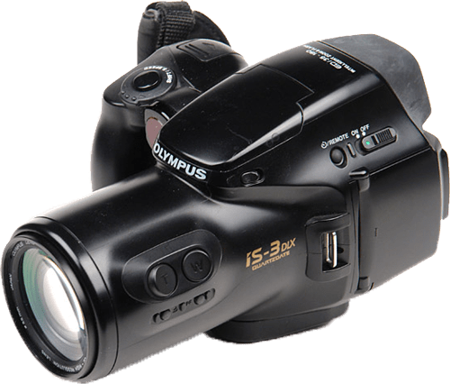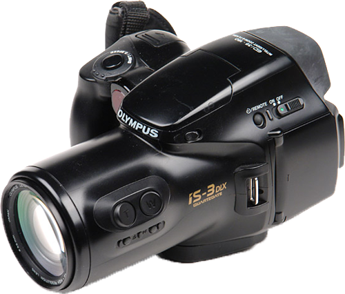 On the left is the amazingly capable and complicated OM Systems OM-1 from 2022. This is a interchangeable lens digital camera with a multitude of advanced features. On the right is the Olympus IS-3 DLX “bridge” camera from 1992. This film camera has a fixed zoom lens, a very limited number of features, and very different ergonomics than today’s cameras.